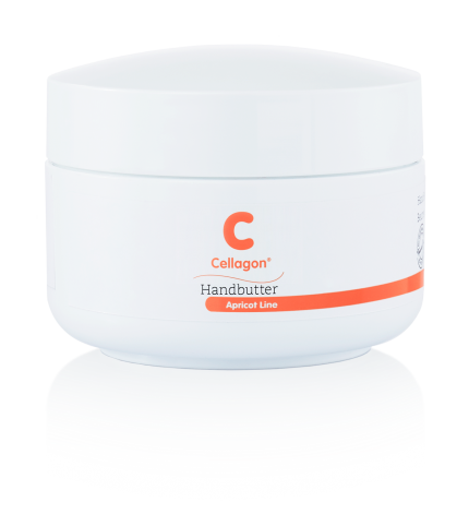 Aus Sicht unserer Haut sind unsere Hände täglich den größten Belastungen ausgesetzt. Kein anderer Hautbereich kommt so kontinuierlich mit körperfremden Gegenständen, Stoffen und Keimen in Berührung wie unsere Hände. Als natürliche „Visitenkarte“ brauchen sie eine ganz spezielle Pflege. Hochwertiges Aprikosenkernöl und Macadamianussöl, sowie eine Reihe weiterer hochwertiger Inhaltsstoffe der Cellagon Handbutter verfolgen ein gemeinsames Ziel, sämtliche Anzeichen stark beanspruchter Hände verschwinden zu lassen. Die herrlich nach Aprikosen duftende Handbutter zieht sehr schnell ein und ist auch die perfekte Pflege für die Nägel und die besonders empfindliche Nagelhaut. Für Sie und Ihn und die ganze Familie.